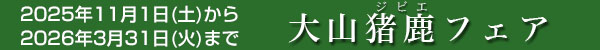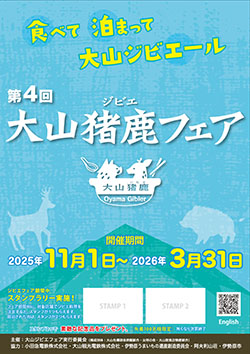 ●大山の各店舗で自慢のジビエ料理をご堪能いただけます。