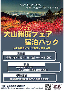 ●夕食は大山名物、各宿坊自慢のジビエ料理を